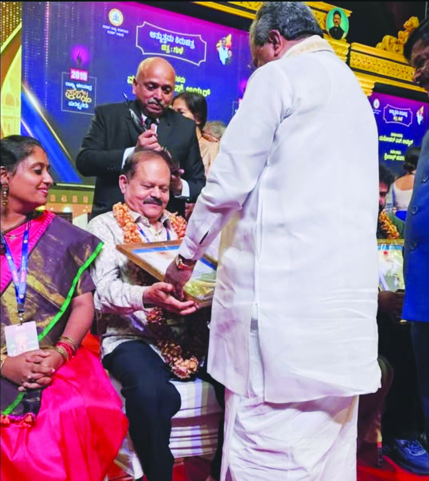 `ಬೆಳ್ಳಿ ತೊರೆ’ ಕೃತಿ ಪ್ರಕಾಶಿಸಿದ ಅಂಕಿತ ಪ್ರಕಾಶನದ ಪ್ರಕಾಶ್ ಕಂಬತ್ತಳ್ಳಿ ಅವರಿಗೆ ಪ್ರಶಸ್ತಿ ಪ್ರದಾನ ಮಾಡಿದ ಮುಖ್ಯಮಂತ್ರಿ ಸಿದ್ದರಾಮಯ್ಯ